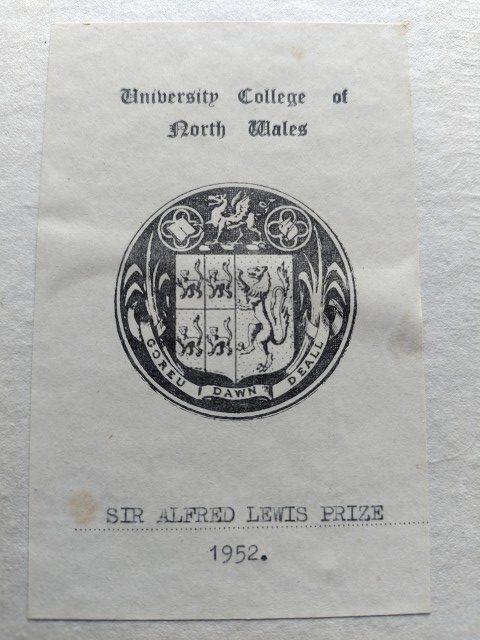 The Sir Alfred Lewis Prize is awarded, according to https://www.bangor.ac.uk/news/archive/prize-winners-2015-23505 to “to the best single or joint honours student in SBS excluding biology or biomedical science”. My father, Roger Lines, was awarded it in 1952, when what is now Bangor University was “The University College of North Wales”.